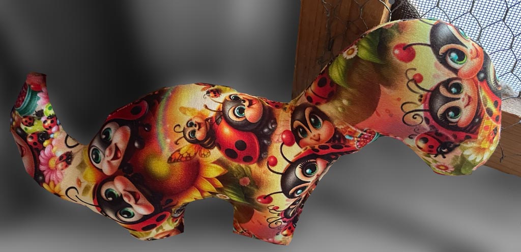 Nun habe ich aus einem der letzten Reste einen Bäfä-Saurus genäht. Einen Saurier mit Käfern halt!