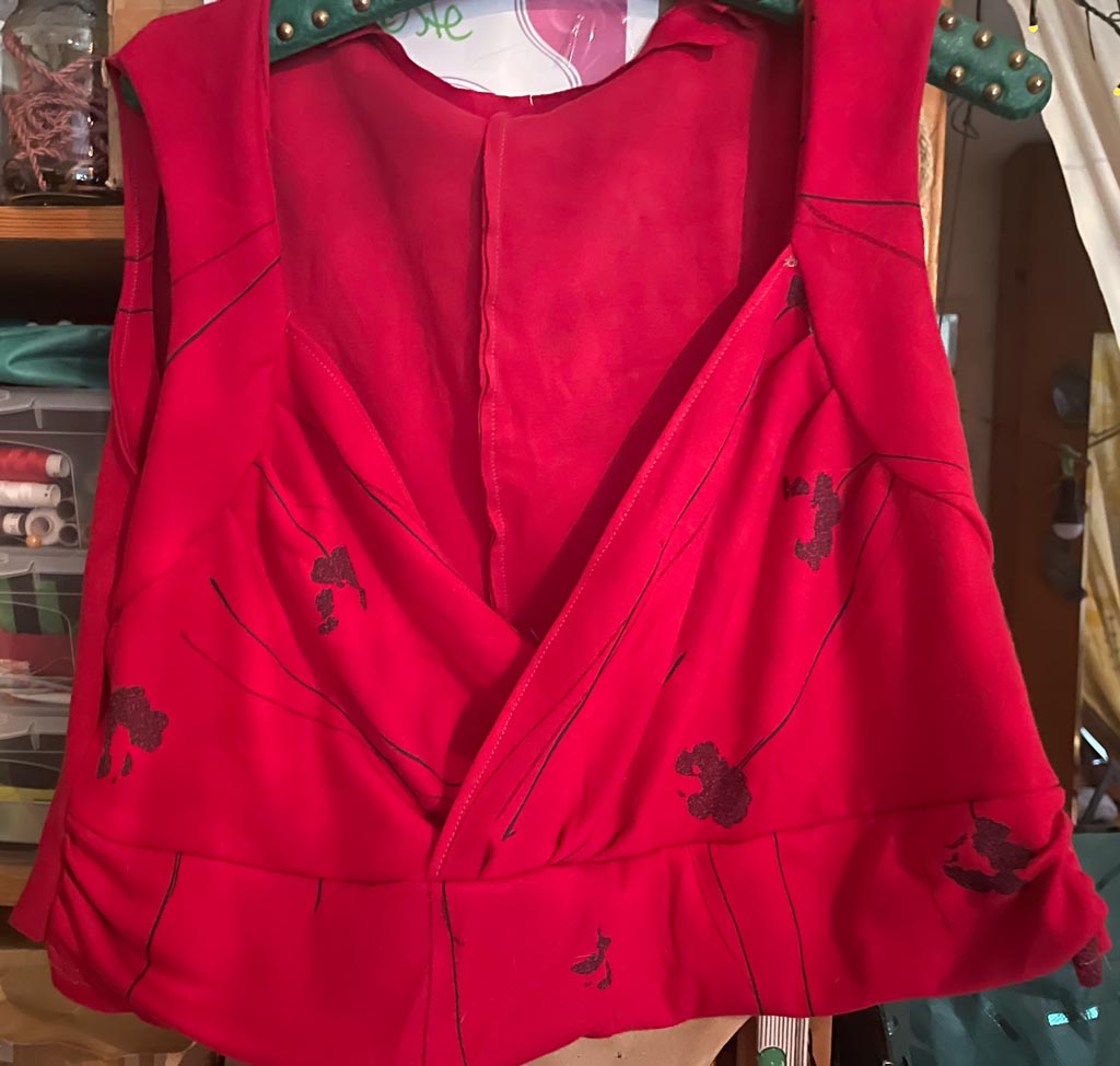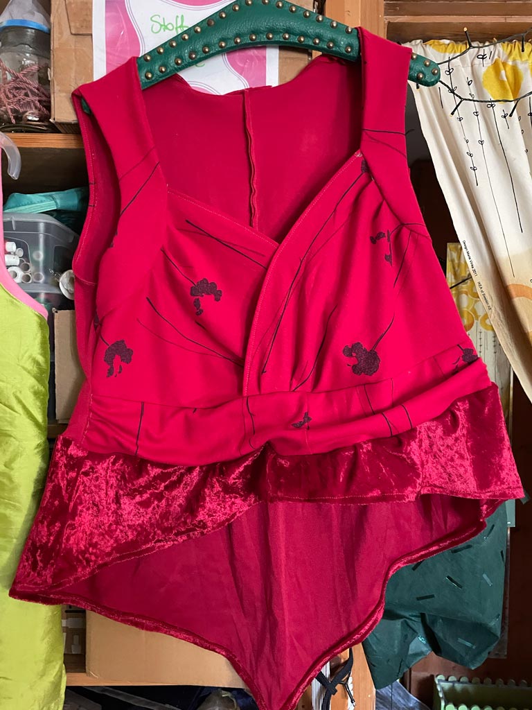 Damit das Probesstück nicht für die Katz ist, habe ich es dann unten noch mit royalem Samt verlängert und kann es so im Sommer für mich tragen.
