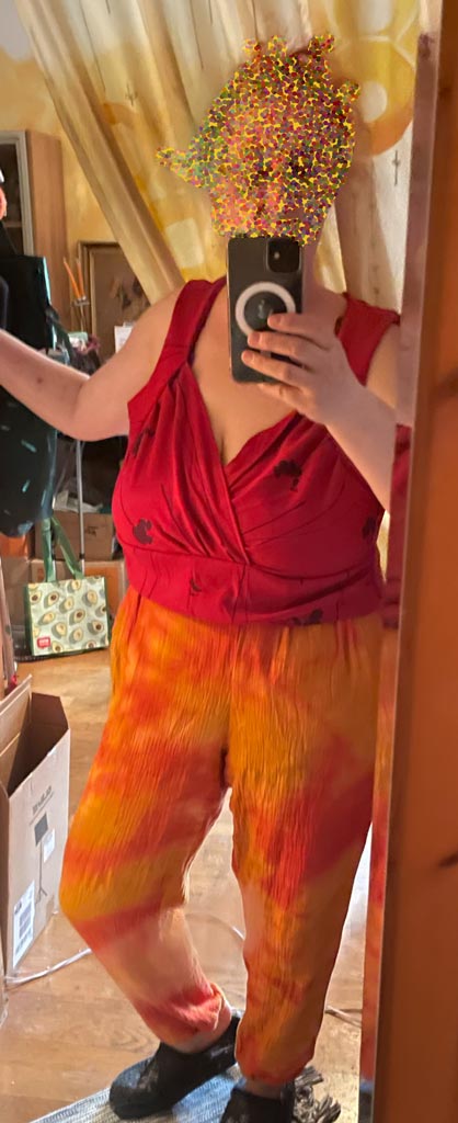 Es wird kein Kleid, ich bastele dann schließlich ein Shirt zur Jeans daraus.