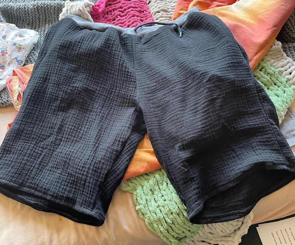 Also habe ich ein Jogginghosen-Schnittmuster organisiert und Musselin bei Evlis Needle bestellt. Die haben gute Preise und schöne Qualität.